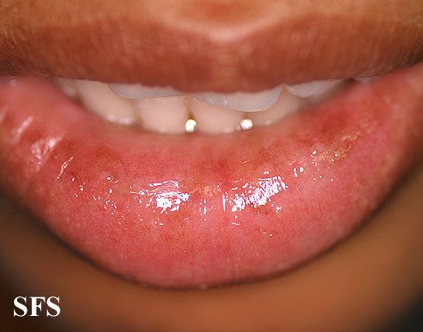 Термин хейлит относится к воспалению губы, и существуют различные типы хейлита, которые не обязательно связаны между собой. Железистый хейлит — это воспаление губ, связанное с нарушением работы малых слюнных желез. Существует три типа, которые считаются легкой, средней и тяжелой стадиями одного и того же состояния. Это включает в себя :